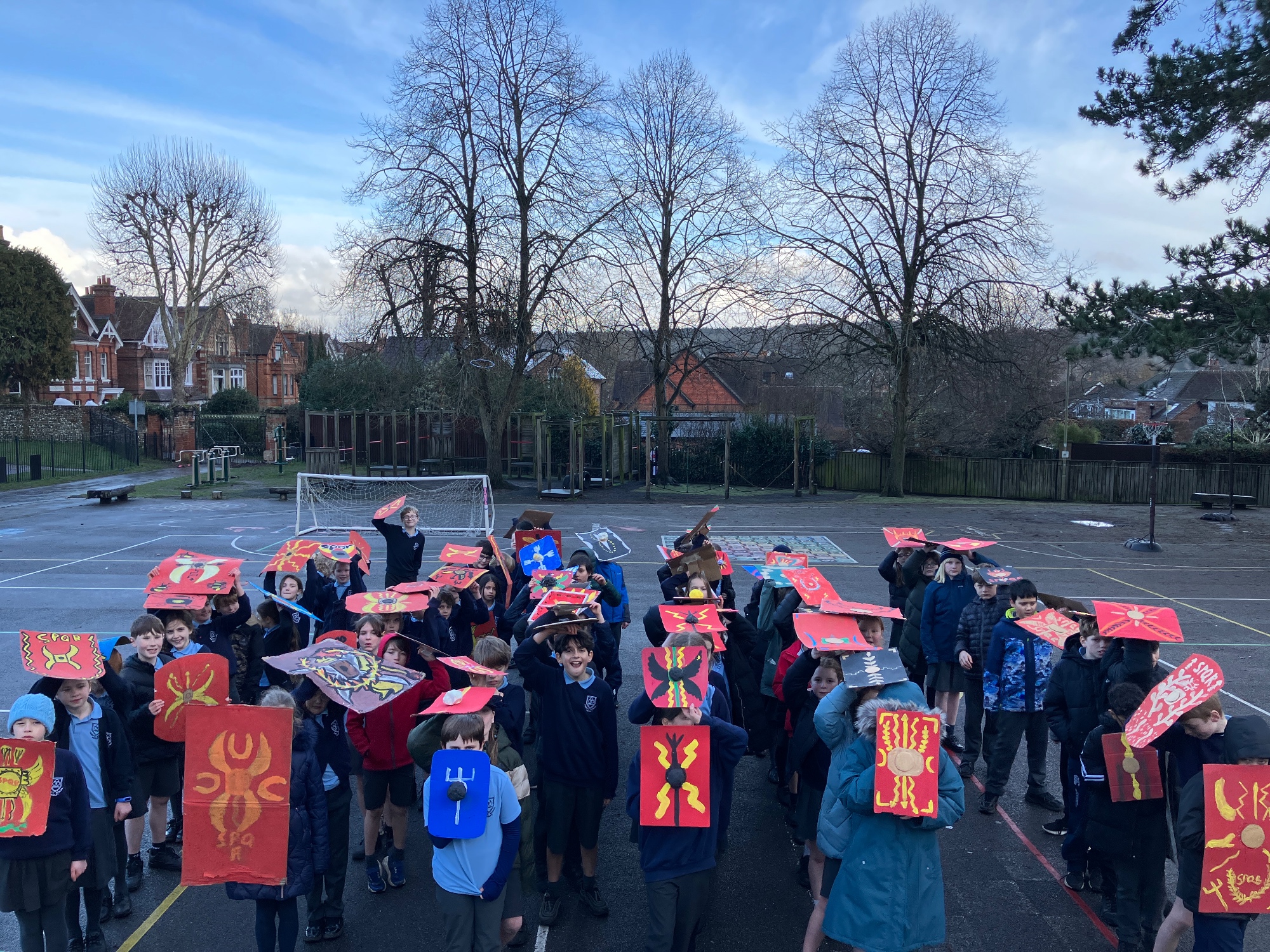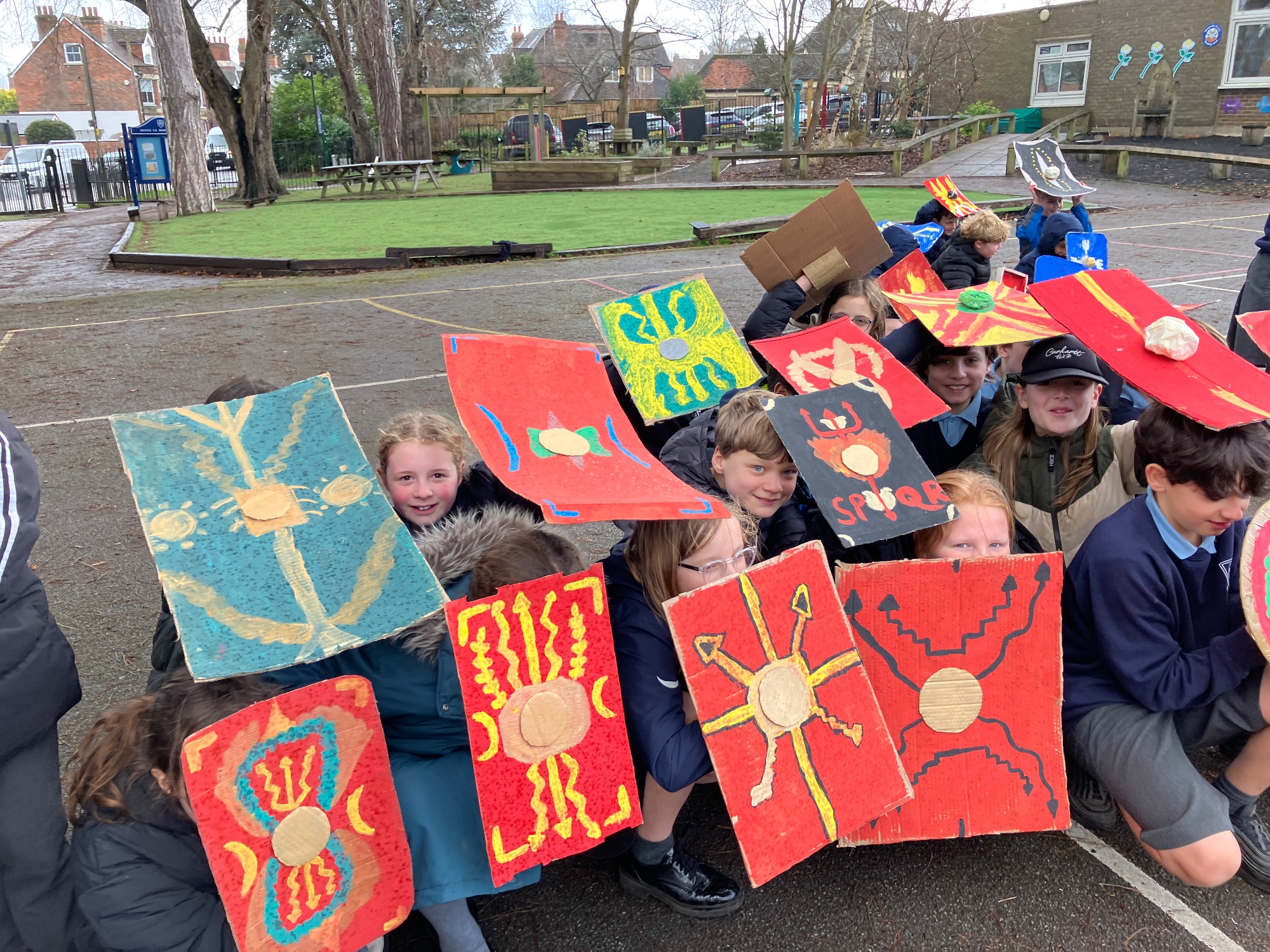 Some fabulous Roman shield designs on display here - all ready for some Roman army manoeuvres when the rain stops! The children have been learning about how the shields were made and the very specific design features that you can see some examples of here.